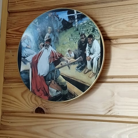 Arabian Kalevala-aiheiset keräilylautaset. Lautasten maalaukset ovat yksityiskohtia Akseli Gallen-Kallelan maalauksesta. Lautasten halkaisija on 23cm. Lautaset ovat ehjiä ja kaikin puolin siistit ja hyväkuntoiset. Lautasissa seinäkiinnike.