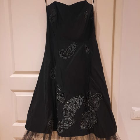 Ihana liehuvahelmainen värikäs satiinimekko. Olkaimet puuttuu, mutta esim. mustien rintaliivien olkaimet käy myös. Erittäin siisti.