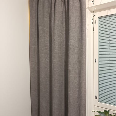 2kpl kaksivärisiä pimennys/pimentäviverhoja. Hyvä kunto, muutamasta kohtaa ylhäältä kuvan mukaiset jäljet.