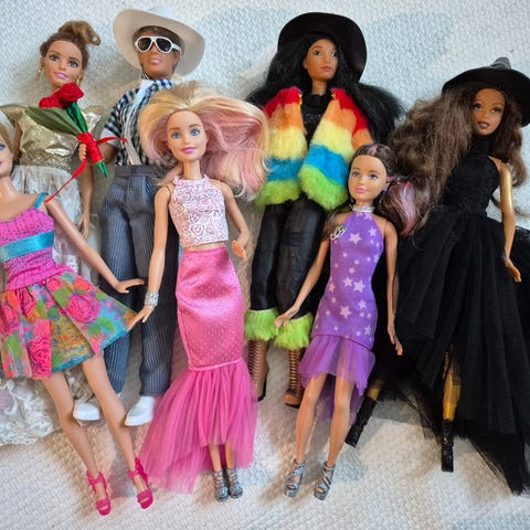 Barbienukkeja leikkiin! Nuket tulevat kuvan mukaisissa asuissa ja asusteissa.