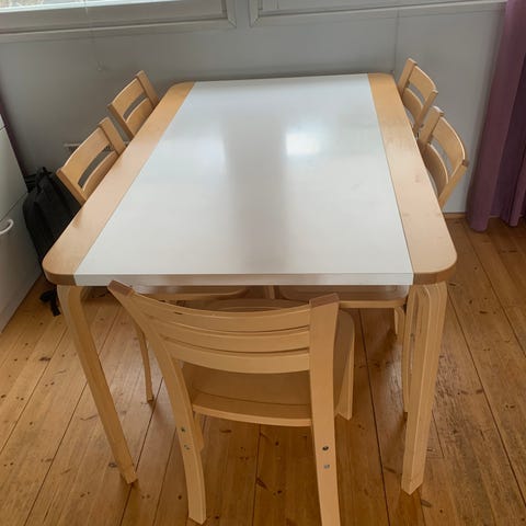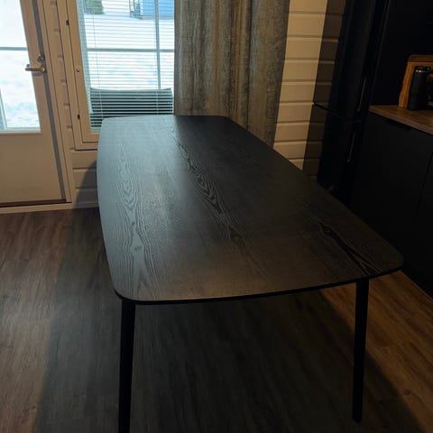 Jyskistä ostetut ruokapöytä & kaksi tuolia.