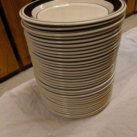 Myydään Arabian Faenza lautasia mustalla raidalla. Kaikissa lautasissa on vielä pienen pienet kulumat pinnoitteessa pohjassa, ei reunassa. Ne eivät juuri erotu tai vaikuta mitenkään. Muuten lautaset ovat ehjiä ja hyvässä kunnossa.