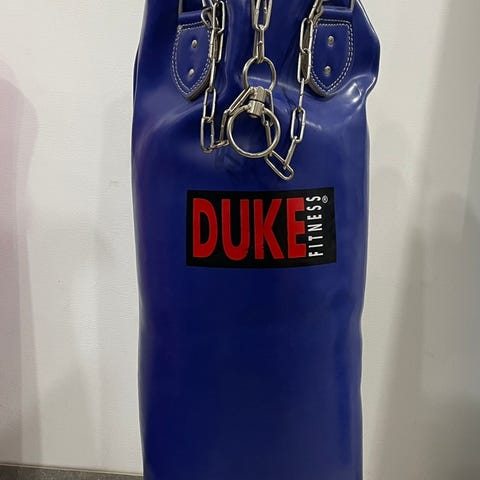 Ehjä ja siistissä kunnossa oleva nyrkkeilysäkki Everlast, kork. 60cm, paksuus 28cm. Mukana järeä kattokiinnike ja kettinki. Lähetys onnistuu lähetyskuluilla lisättynä.