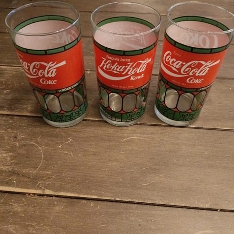 Alkuperäispakkauksessa olevat Coca-Cola lasit. Eri värejä. Ja eri malleja. 2€/kpl.