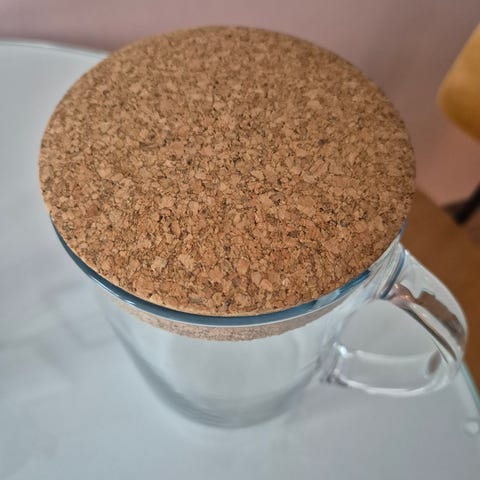 Muovikansi. Läpimitta ilman kahvaa vajaa 9 cm, mahtuu standardi jääkaapin oveen. Korkeus noin 24,5 cm.