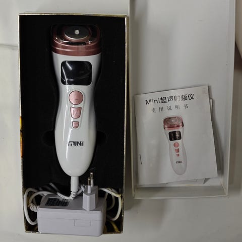 Tuntuu iholla lämpimälle ja nipistelee hieman, tarvitsee toimiakseen vesipohjaista geeliä/päivävoidetta. Lisätietoja: https://www.drlevy.swiss/products/the-contour-pro