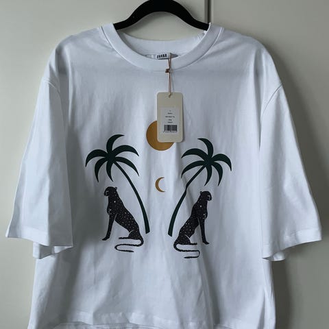 Upea ja tyylikäs Uhanan boxy-mallinen t-paita Love-printillä. Koko oversize S, kts mittataulukko kuvista.