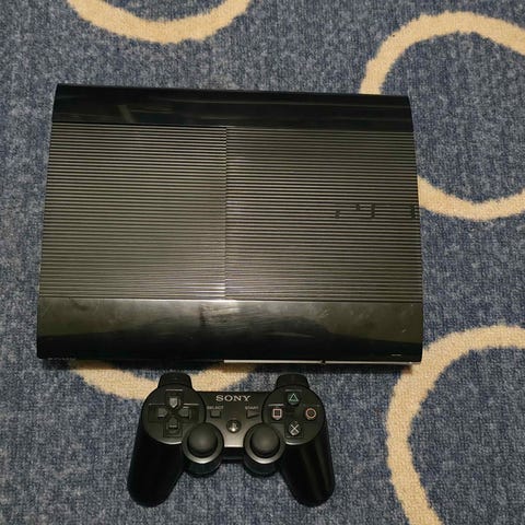 Mukaan punainen dualshock-ohjain ja Skate 3-peli. Konsolissa jälkiasennettu 240gb SSD.