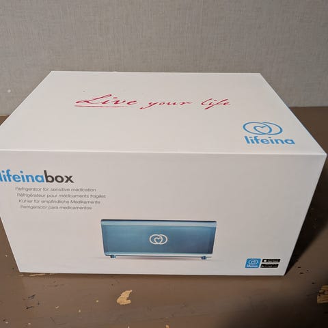 Lifeinabox minilääkejääkaappi täysin käyttämätön, koska ei ollutlaan tarvetta.