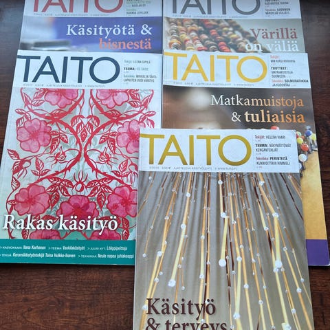 Kokoelma Taito-lehtiä, jotka sisältävät erilaisia käsityöaiheisia artikkeleita ja ohjeita. Lehdissä käsitellään muun muassa korujen tekemistä, käsin tehtyjä puutarhatöitä, tekstiilimallien haasteita, kesämatkakohteita, pitsien ja kirjonnan tekniikoita sekä muita käsityöhön liittyviä aiheita. Lehtikokoelma sopii käsityöharrastajille ja käsityötekniikoiden opiskeluun. 4kpl/8€