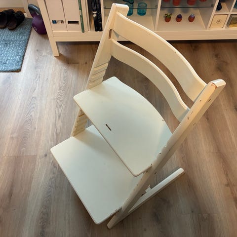 Hyväkuntoinen tummanruskea Stokke Tripp Trapp syöttötuoli sekä Baby Set