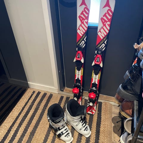 Atomic laskettelusukset pituus 130 cm ja monot musta ja keltainen väri, koko 245 (285mm). Kunto hyvä.