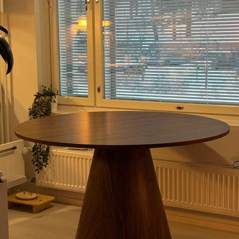 Myydään ruokailuryhmä. Pyöreä Morgan ruokapöytä vekeltä 120 cm. Pöydän kansi on tammen värinen, laminoitua mdf-levyä. Jalat terästä, jotka on jauhemaalattu mustaksi. Jalat saa irti kuljetusta varten. Pyry tuolit on myös vekeltä. Yhdestä tuolista rottinki vähän purkautunut ja parista tuolista istuinosasta katkennut pari pätkää rottinkia. Istuinpehmusteet saa halutessaan. Pöydän ovh. 320e ja tuolien ovh. 500e. Voin myydä pöydän ja tuolit erikseen!