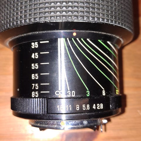 Focus: 3 ft → ∞ (manual focus with distance scale)