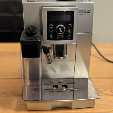 Myydään tyylikäs ruostumattomasta teräksestä valmistettu kohtuullisen vähällä käytöllä ollut espresso- ja cappuccino-keitin.
