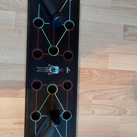 Monipuolinen punnerruslauta/alusta kotitreeniin, jossa kahvat joiden paikkaa voi muuttaa sen mukaan mitä lihasryhmää treenaa.