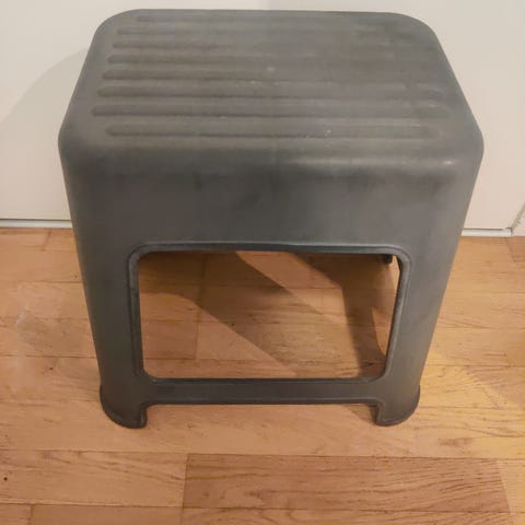 IKEA jakkara, valmistettu puusta ja maalattu valkoiseksi. Jakkarassa on kaksi askelmaa ja keskellä yläosaa kantokahva. Soveltuu esimerkiksi keittiöön tai muihin tiloihin, joissa tarvitaan pientä korotusta tai istuinta.