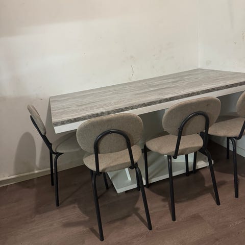 Myydään ruokailuryhmä. Pöytä ja 6 kpl tuoleja. Viimeisessä kuvassa pöydässä näkyvä pieni virhe. Tuolit ja pöytä muutoin täysin kunnossa. Vain nouto tai voidaan toimittaa lähialueille lisähinnasta.