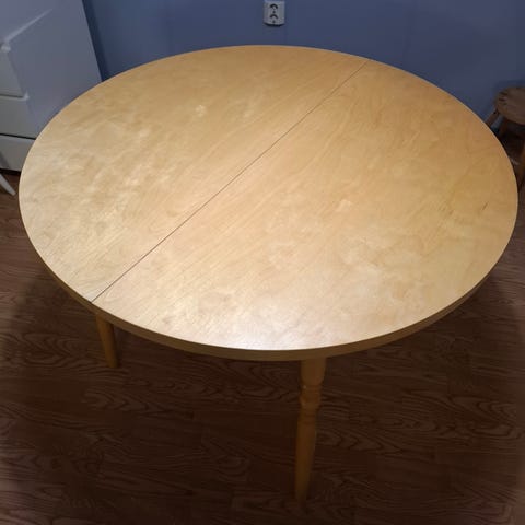 Pöydän kannesta on pieni lastu irronnut, sen huomaa lähinnä pöytää pyyhkiessä. Jää pöytätabletin alle, eikä meillä ole haitannut käyttöä. Tämä on huomioitu hinnassa.