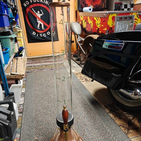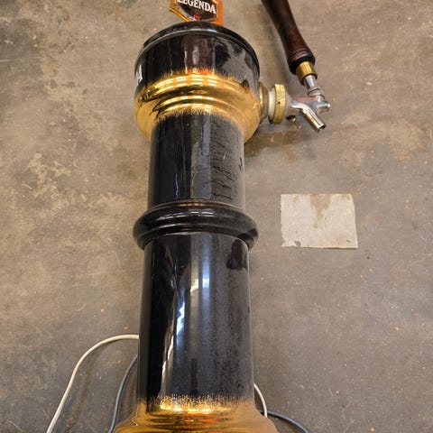 Kuvanmukainen rekvisiitta posliini tolppa vaikka autotalliin, miesluolaan tai vaan koristeeksi. Saa kiinni pöytään kierretappien avulla. Toimivuudesta ei mitään tietoa mutta ehjä on ja kannen saa nostamalla irti.