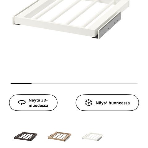 Myydään neljä tarpeettomaksi jäänyttä, valkoista Ikea KOMPLEMENT-ulosvedettävää verkkokoria kiskoineen.