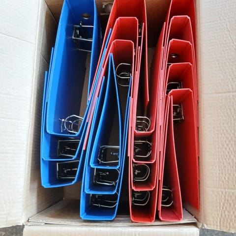 rengaskansio A4 -sininen (yksi hiukan eri sinistä, kirkkaampi sininen)