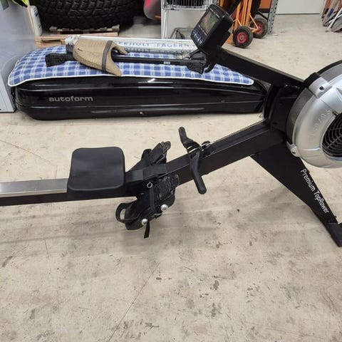 Soutulaite musta väriltään. Soveltuu sisäkäyttöön kuntoiluun ja harjoitteluun. Laite tarjoaa vastuksen vedon aikana ja sisältää istuimen, kahvat sekä näyttölaitteen harjoituksen seuraamiseen. Laite kuin uusi.