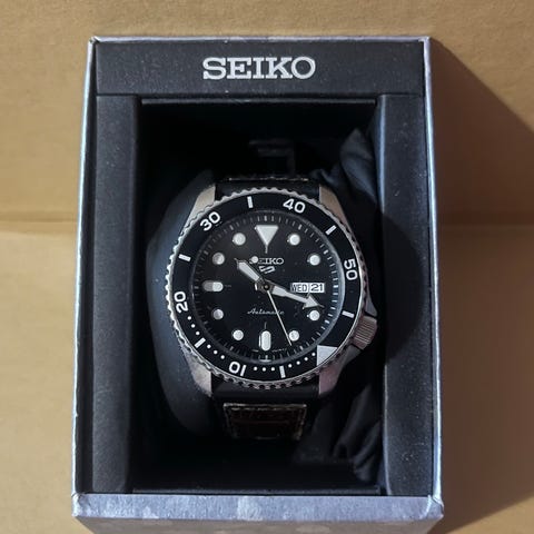Seiko miesten rannekello, jossa on sininen kellotaulu ja musta ranneke. Kellossa on selkeä näyttö ja pyöreä kellonrunko. Sopii arkeen ja vapaa-aikaan, pepsi värityksellä.