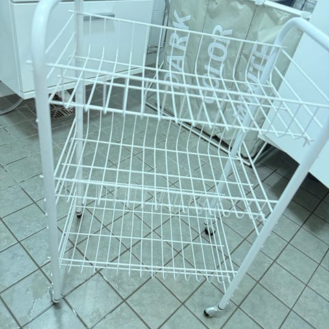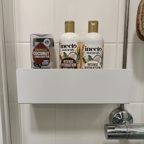 Metallinen valkoinen seinähylly, jossa on 2 hyllytasoa. Soveltuu esimerkiksi keittiöön tai varastotilaan säilytykseen, kasvitelineeksi ja järjestelyyn. Korkeus 45, leveys (säde) 22