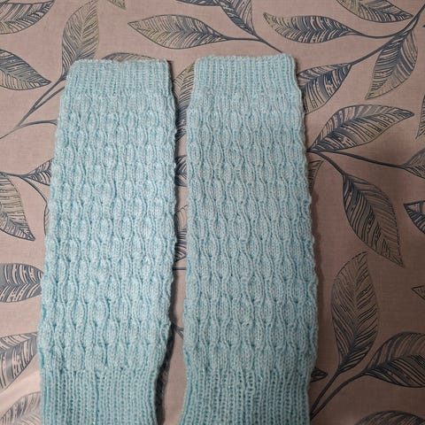 Myynnissä myös UUDET neulotut jäänsiniset säärystimet eri ilmoituksessa.