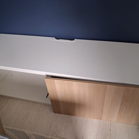 IKEA BESTÅ lipasto valkoisella värillä. Lipastossa sivulla pieni kolhu