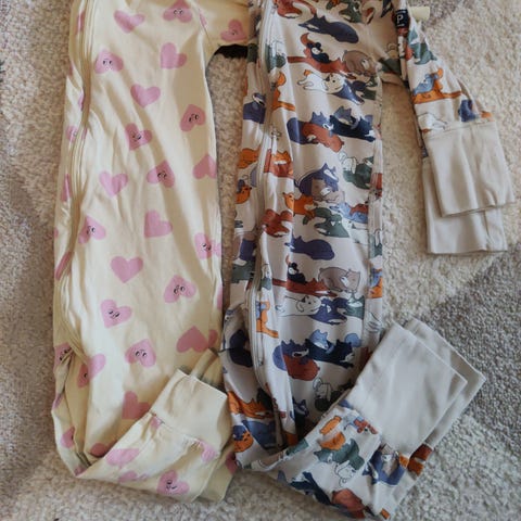 Kunto siisti käytetty. Pyjamamekossa pieni reikä, siitä kuva. Kukallinen pyjama ollut päässä vain satunnaisesti.