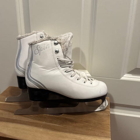 Spin-merkkiset, valkoiset lasten kaunoluistimet kokoa 36. Käytön jälkiä löytyy mutta muuten luistimet ovat hyvässä kunnossa. Teroitettu n. vuosi sitten.