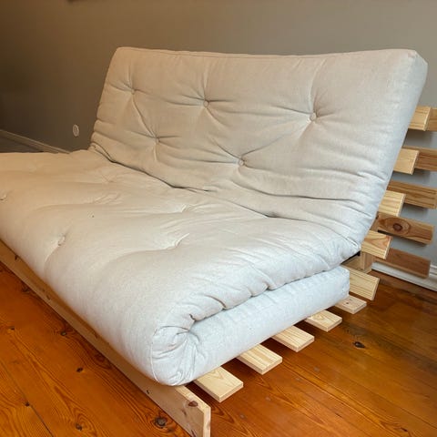 Karup Design -Roots futonsohva 140cm. Vaalea patja ja puunvärinen runko. Yleisilme siisti, jotain tahroja patjan molemmin puolin (koitin ottaa näistä kuvia), ei ole yritetty poistaa. Nouto Pornaisista, Järvenpääntien varrelta! 🙂