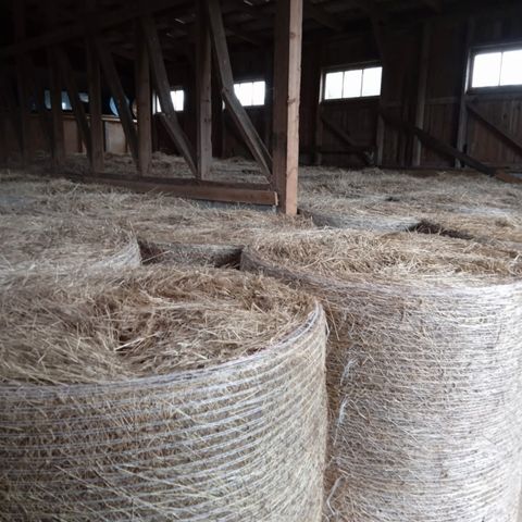 Kuiva heinää pyöröpaaleissa, kuivurissa kuivattua. 2025 sato
