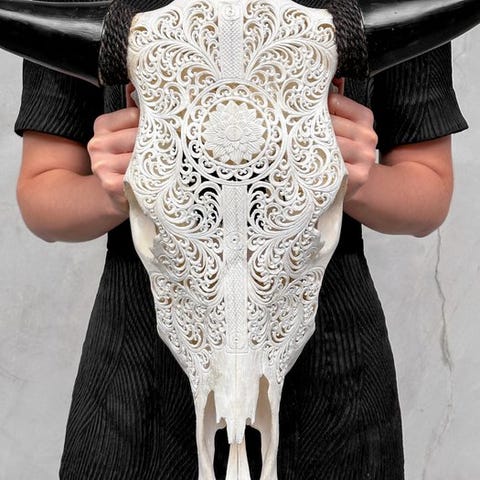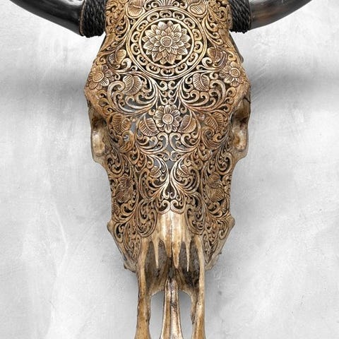 Ei varaushintaa - aito suuri harmaa käsin veistetty härkäkallo - kukka mandal