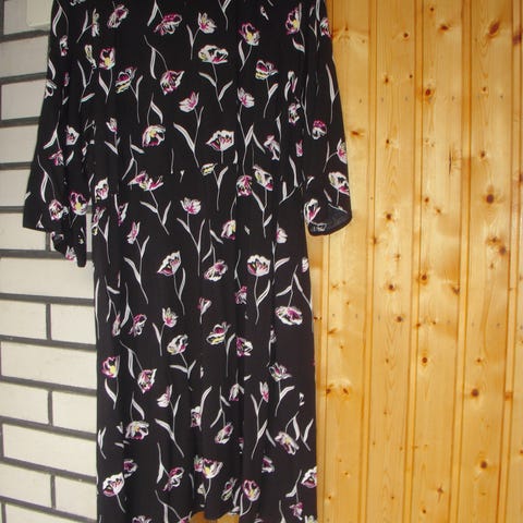 Tyylikäs tunika/mekko harmaan ja valkoisen kukkaprintin koristeella.