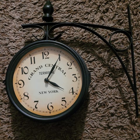 Siisti ja ehjä kaksipuolinen asemakello. Halkaisija noin 20cm ja molemmat puolet toimivat AA-paristolla.