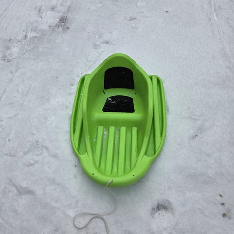 Kaksi lasten pulkkaa myynnissä. Molemmat hyvässä käytössä. Punaisessa pulkassa on pieni halkeama pohjassa, mutta sitä voi silti käyttää normaalisti.