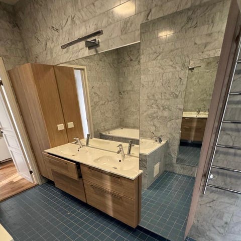 Myydään allaskaapistot + valumarmoriallas + peili + valaisin.