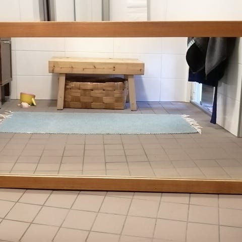 Hakusanat: puu tiikkipeili puinen eteinen käytävä olohuone makuuhuone kylpyhuone seinäpeili seinä seinälle mosaiikki korkki tiikkinen teak tiikkipuinen boheemi puukehyksinen puu kehyksinen puinen kehys