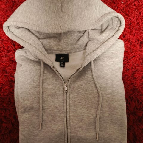 Uusi huppari, vain testattu. Materiaali 60 % puuvilla ja 40 % polyesteri. Etutasku ja hupussa nyöri.