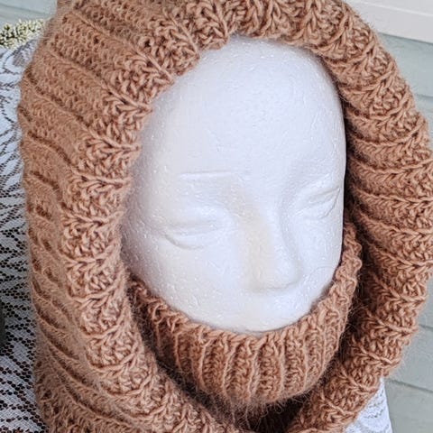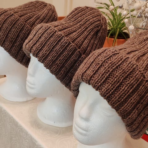 Käsin tehdyt huppupäähineet.