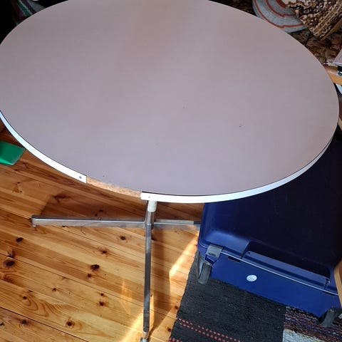 Tapiovaaran suunnittelema Askon toteuttama jatkettava pöytä 60-70 luvun taitteesta. Elämän jäljet näkyy ja se välipala puuttuu, mutta on helposti modattavissa.