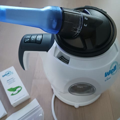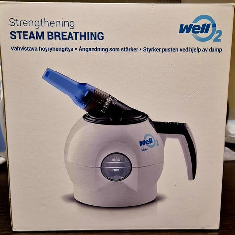 Myydään kuvan mukainen Wello2-höyryhengityslaite. Käyttöohje ja menthol-aromaattiset tabletit mukana.