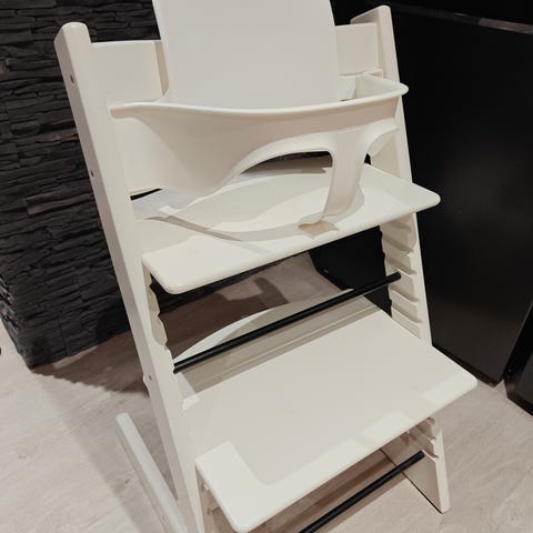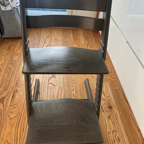 Myydään musta stokke tripp trapp tuoli. Mukana babyset sekä kaatumisestot. Yleisilme tosi siisti, pieniä kolhuja/värivirheitä - niistä tarkemmat kuvat.