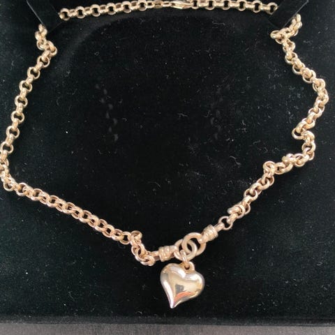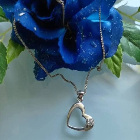 Iso hopeinen sydän kaulakoru