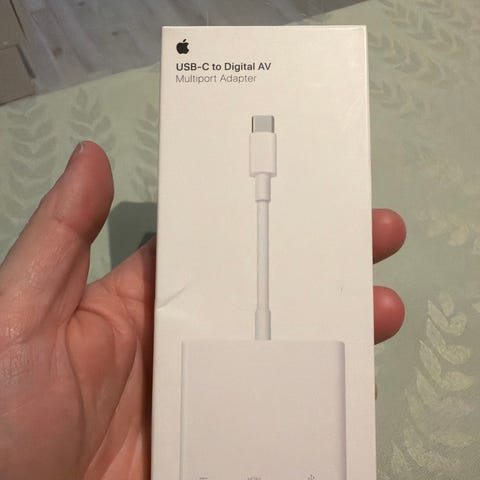 Alkuperäinen Applen USB-C–USB-sovitin, joka mahdollistaa USB-A-laitteiden liittämisen USB-C-porttiin.