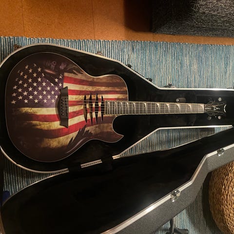 Upea mattamusta Deanin elektroakustinen kitara + Deanin kova laukku. Huollettu ja säädetty ammattilaisella. Kielet 10/54.