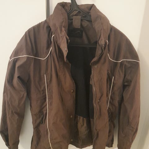 Jotain ikilikaa pienesti, en ole koittanut lähtisikö tahranpoistoaineella. Muuten siistikuntoinen ja vetoketju toimii.